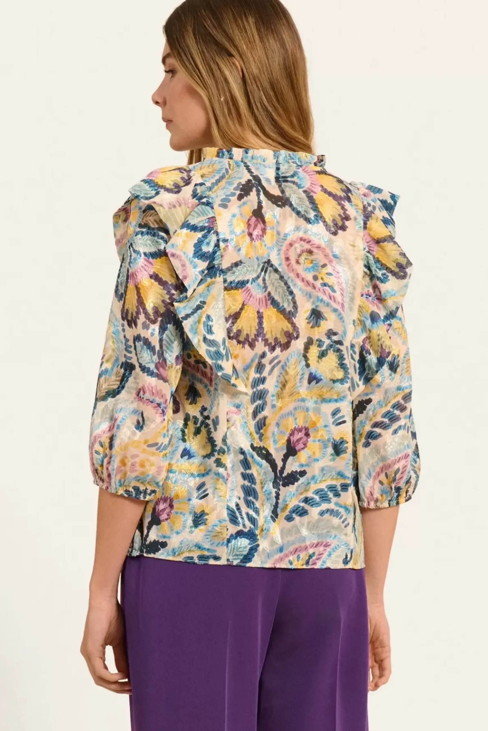 Cette blouse imprimée à manches 3/4 avec un décolleté en V est idéale pour une touche élégante et décontractée.