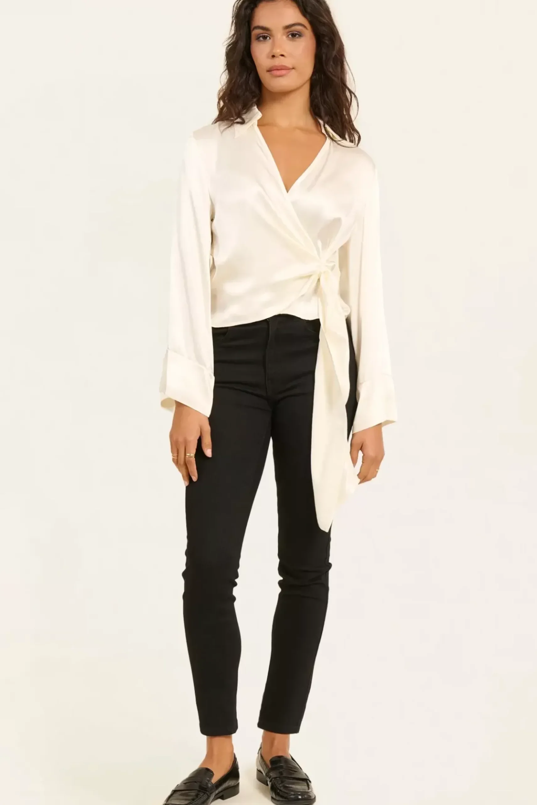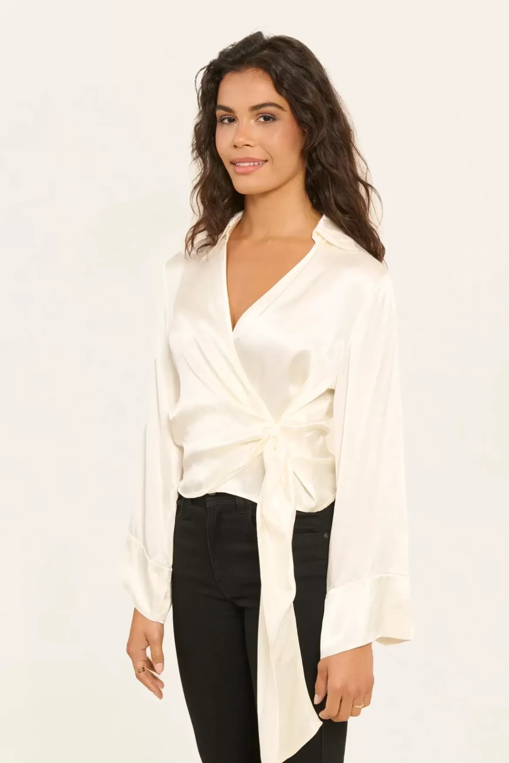 Cette blouse courte cache-cœur satinée, ornée d’un nœud délicat sur le côté gauche, allie élégance et confort. Ses manches 3/4 apportent une touche de sophistication, parfaite pour les occasions spéciales ou pour égayer votre quotidien.