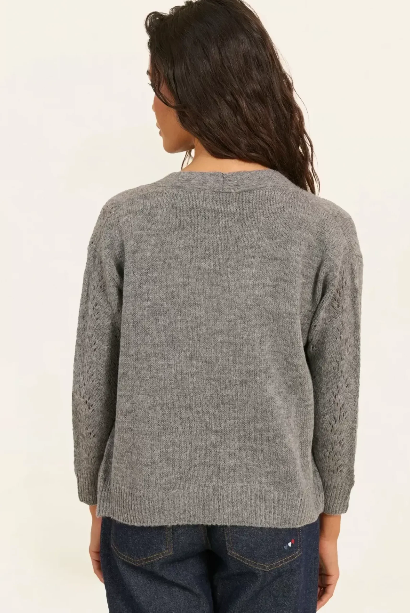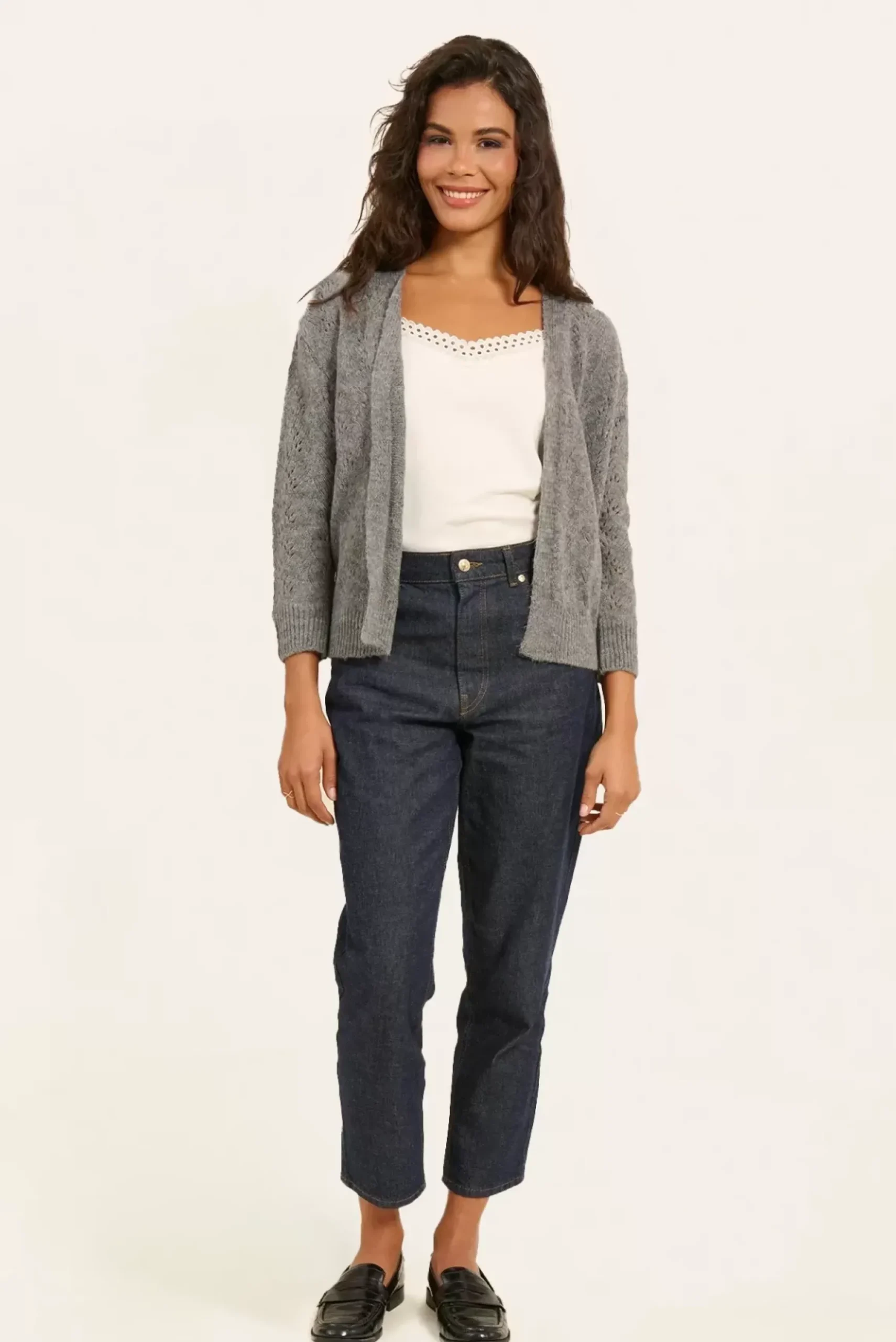 Ce gilet en maille ajourée est parfait pour apporter une touche délicate et féminine à votre tenue. Ses manches longues assurent chaleur et élégance tout au long de la journée.