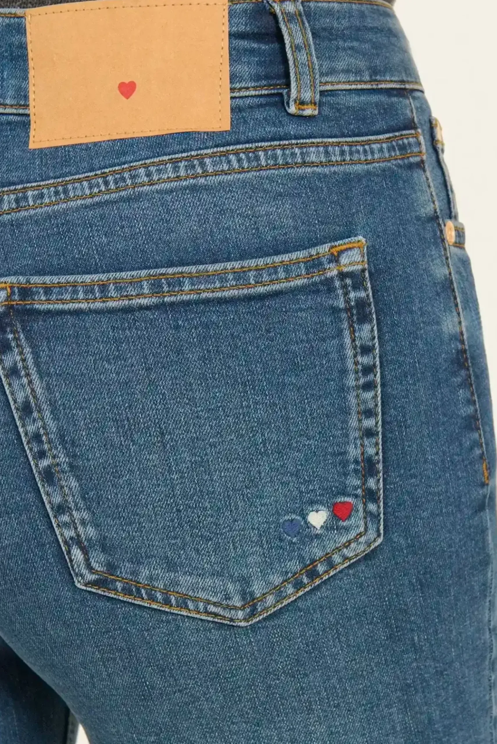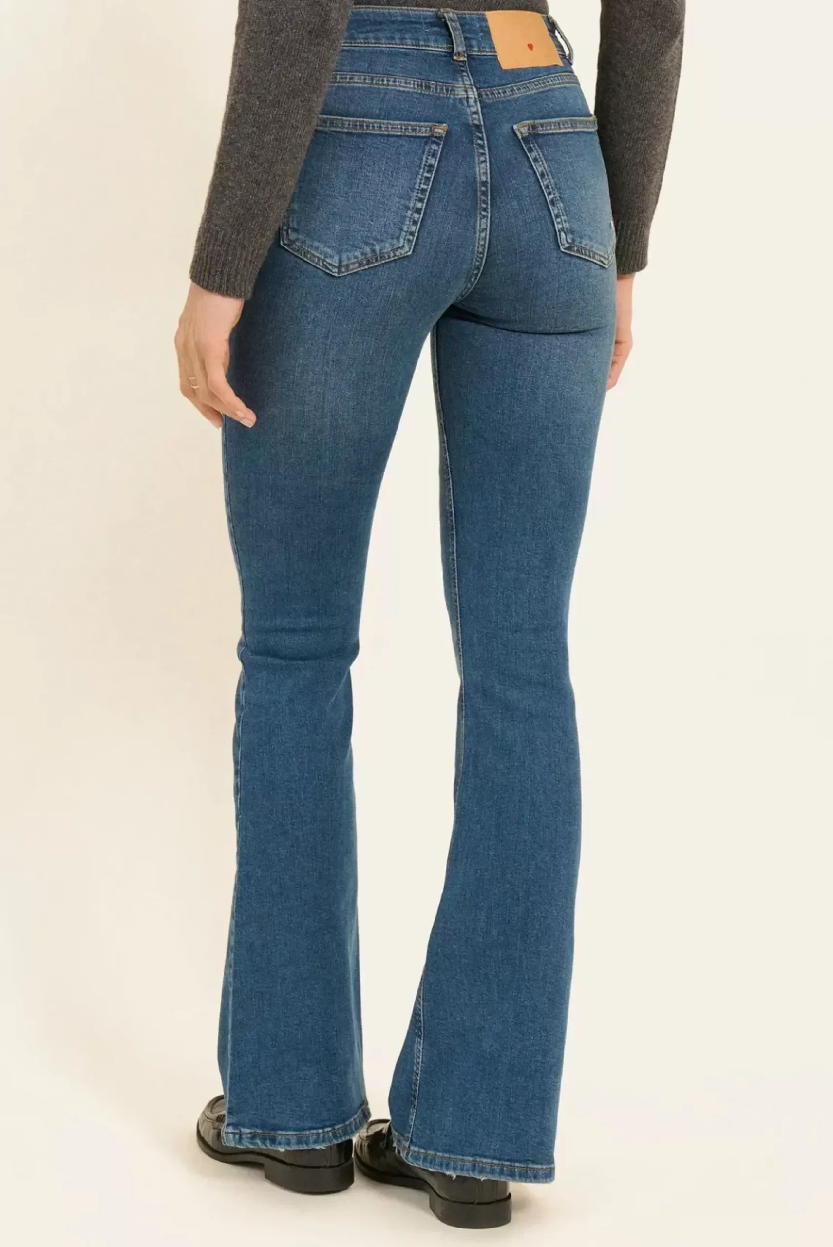 Ce jean flare taille haute, avec ses 4 poches et ses 5 passants de ceinture, allonge et affine la silhouette. Sa coupe évasée lui donne une allure rétro et moderne à la fois.