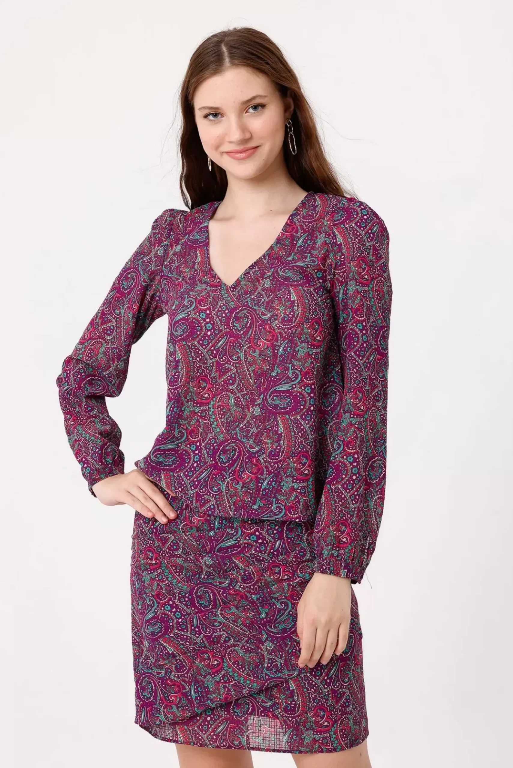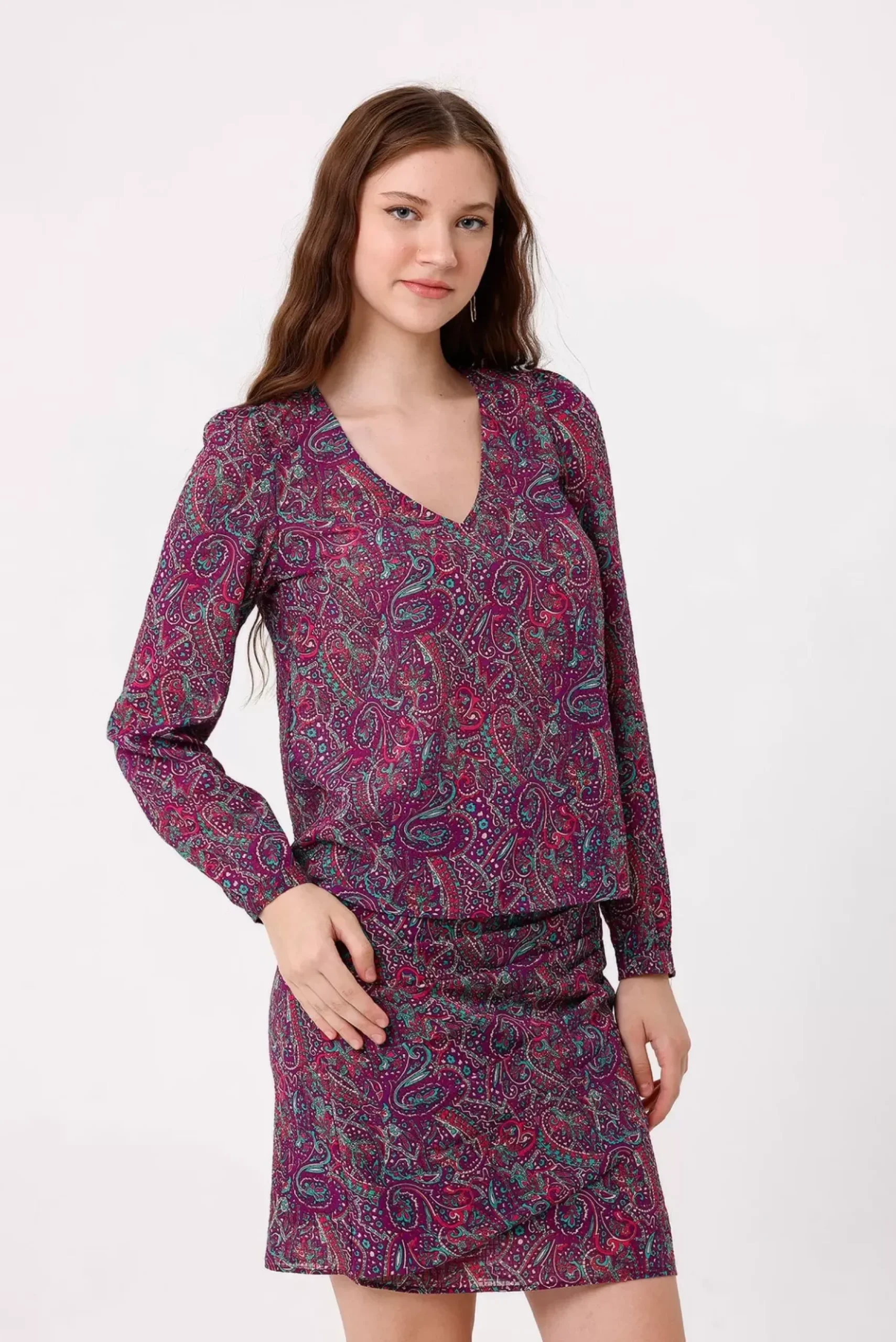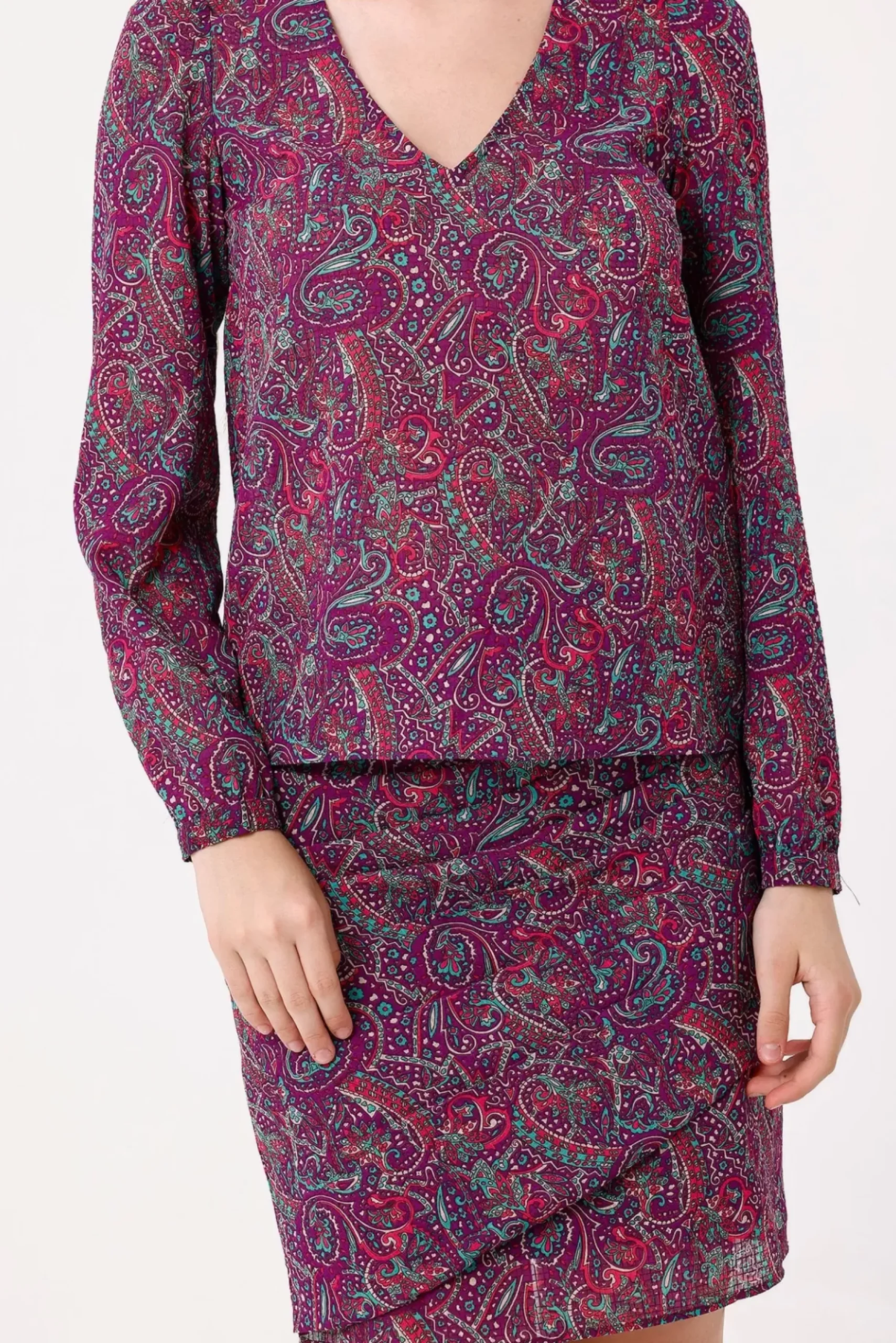 Découvrez cette jupe courte taille haute, moulante et drapée, offrant une silhouette élégante et une longueur courte. Sa matière légère ajoute confort et fluidité à votre tenue.