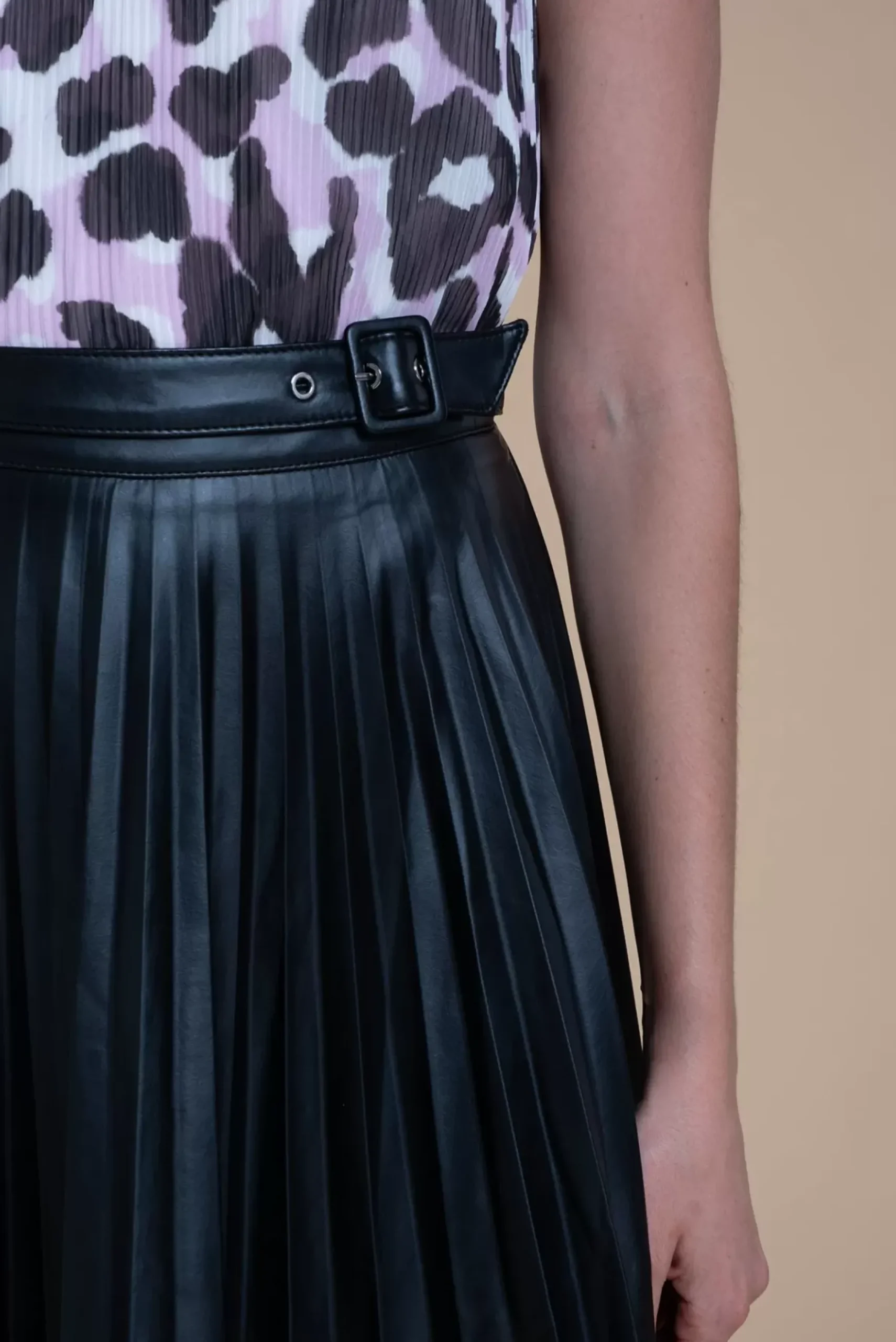 Une jupe courte élégante et tendance en cuir synthétique, avec des plis délicats pour une touche de sophistication, entièrement doublée pour un confort optimal, une fermeture à glissière discrète à l’arrière pour un ajustement facile, et une ceinture réglable à la taille pour un ajustement personnalisé.Pourquoi nous l’aimons :Cette jupe combine le charme du cuir synthétique avec l’élégance des plis, offrant un style polyvalent qui peut être habillé ou décontracté selon l’occasion.Notre conseil style :Parfaite pour une soirée en ville ou une journée au bureau, cette jupe se marie bien avec un chemisier élégant ou un t-shirt basique pour un look chic et moderne.