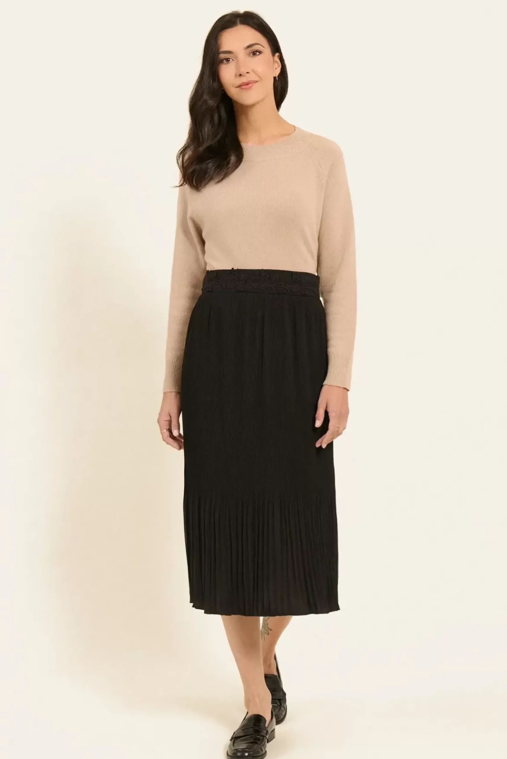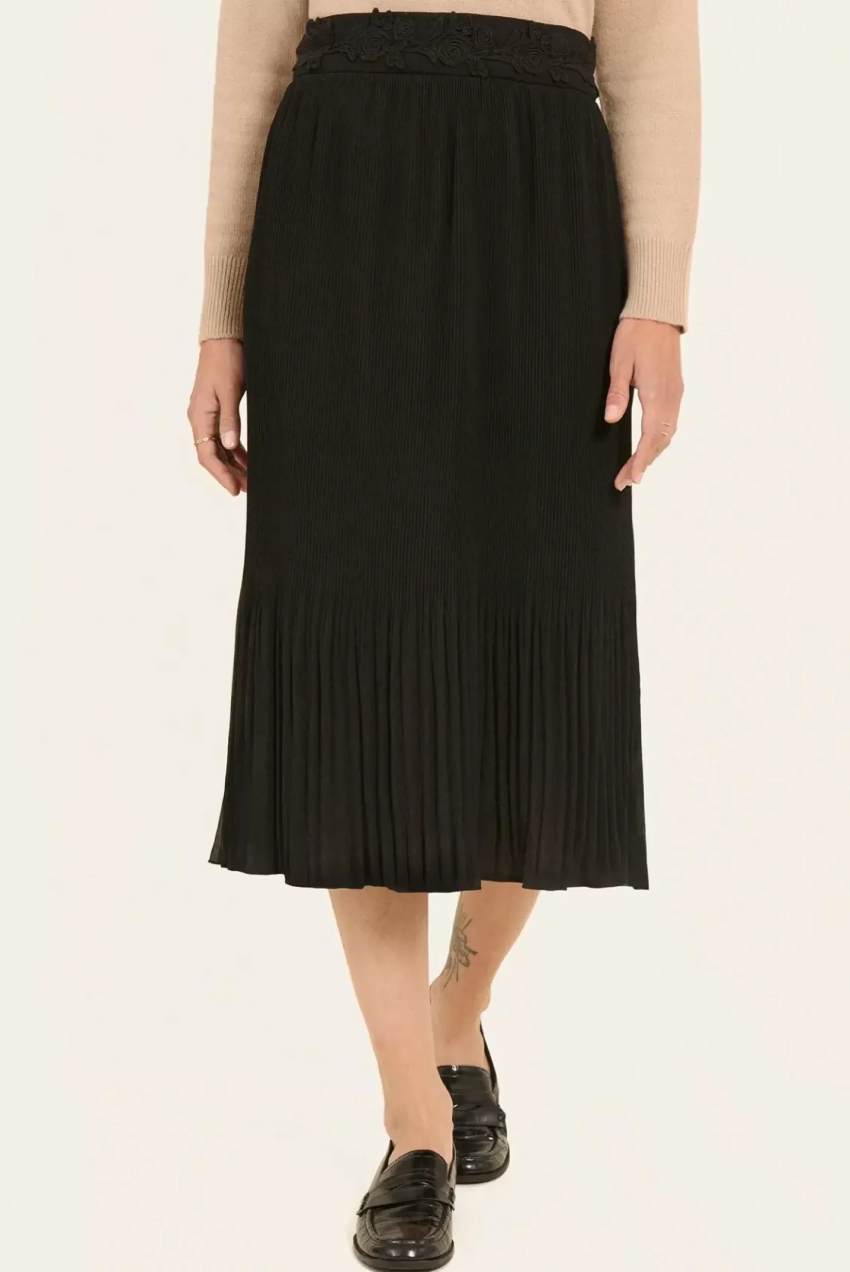 Cette jupe longue plissée à volants ajoute une touche de fluidité et de féminité à votre garde-robe tout en étant doublée pour un confort optimal.