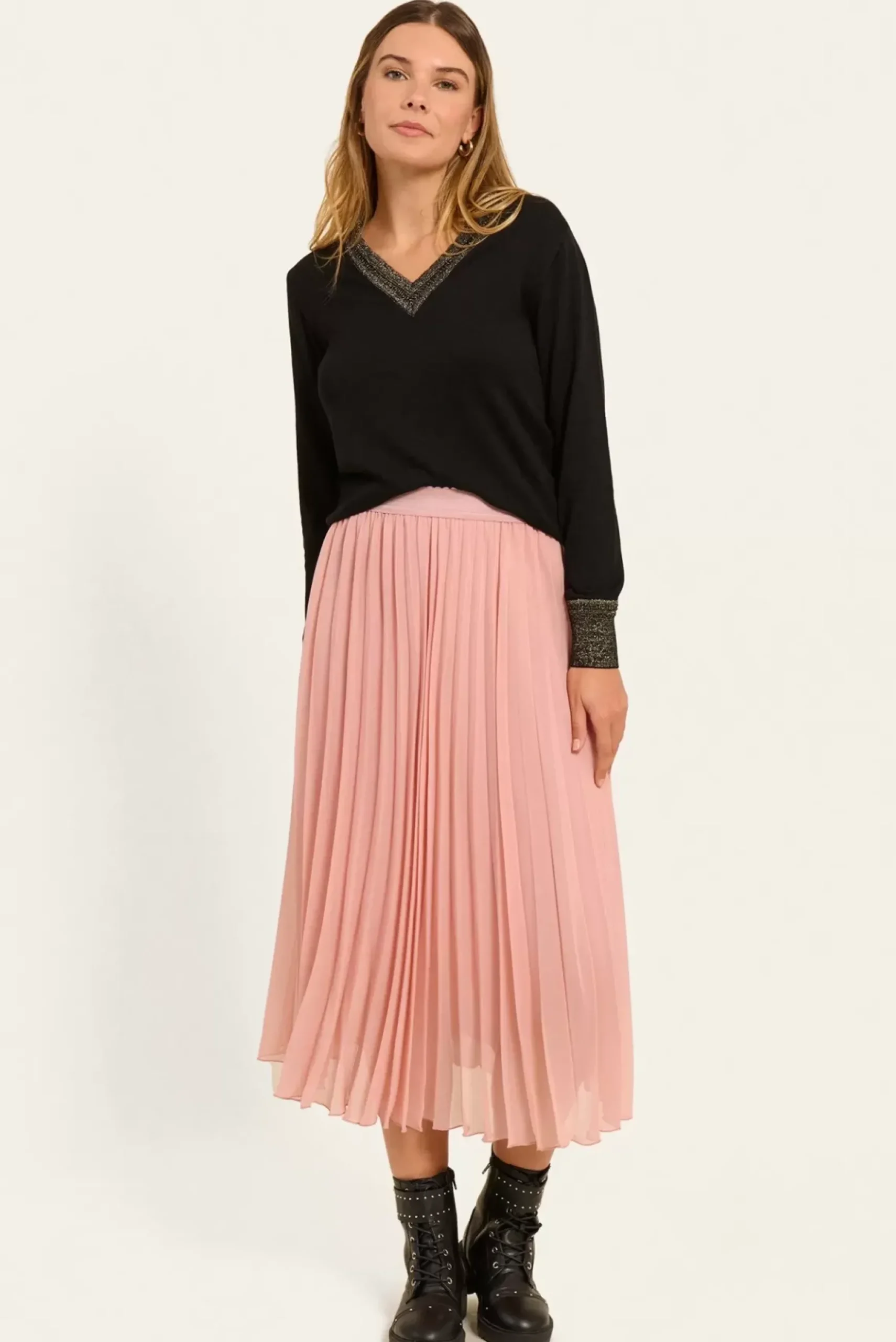 Cette jupe midi plissée et doublée offre un style chic et intemporel, parfaite pour toutes les occasions.
