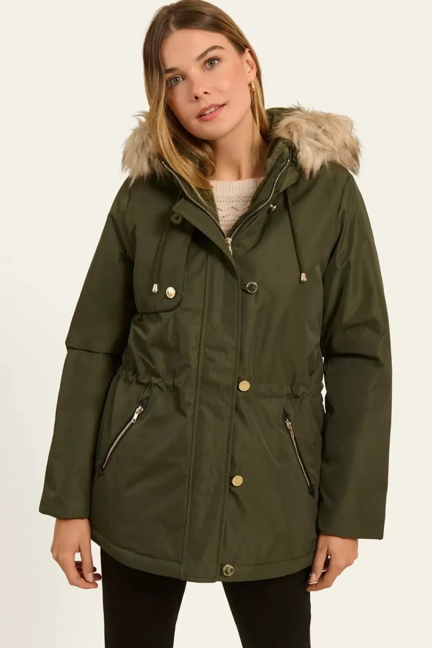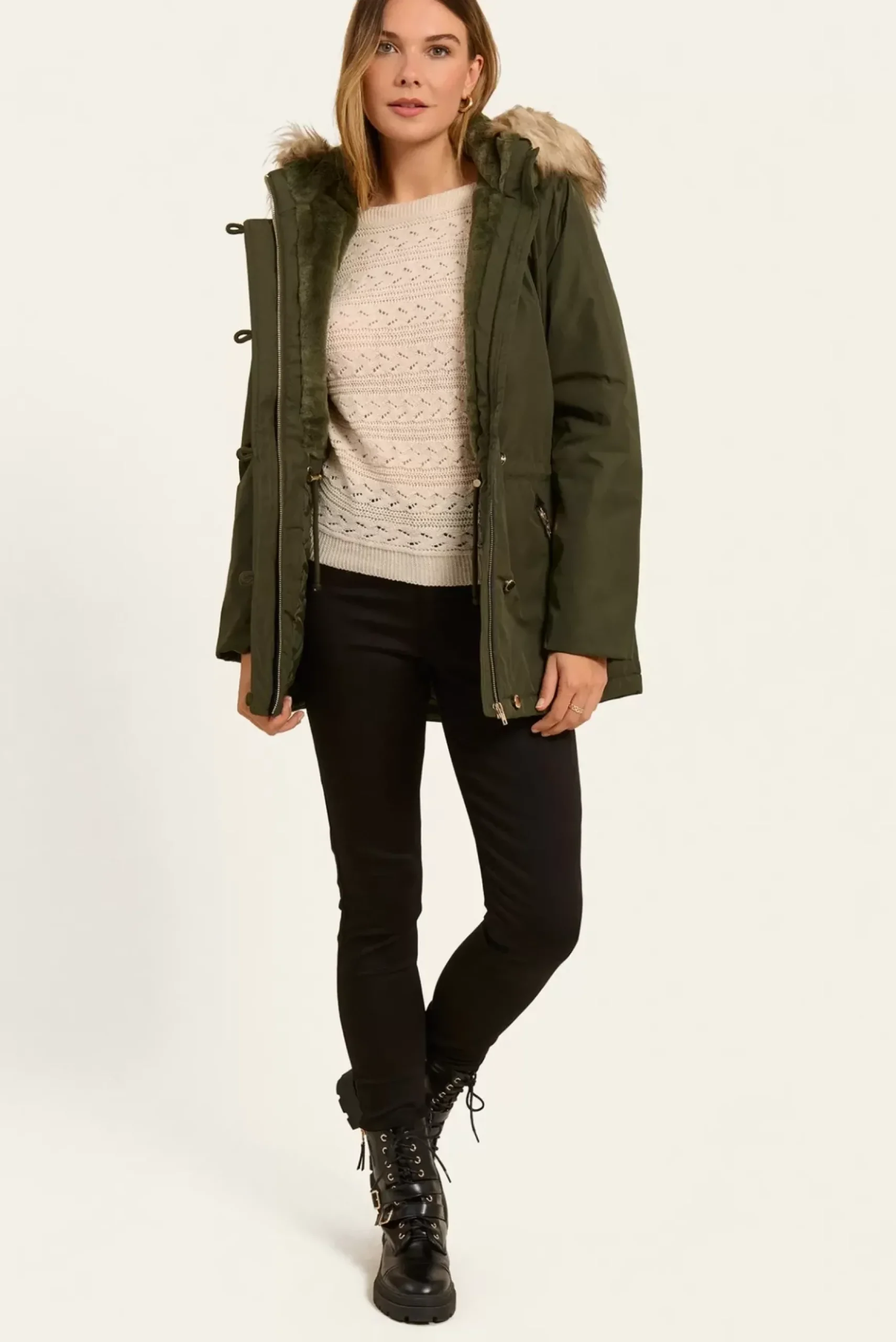 Cette parka à capuche allie chaleur et style, parfaite pour les jours frais.