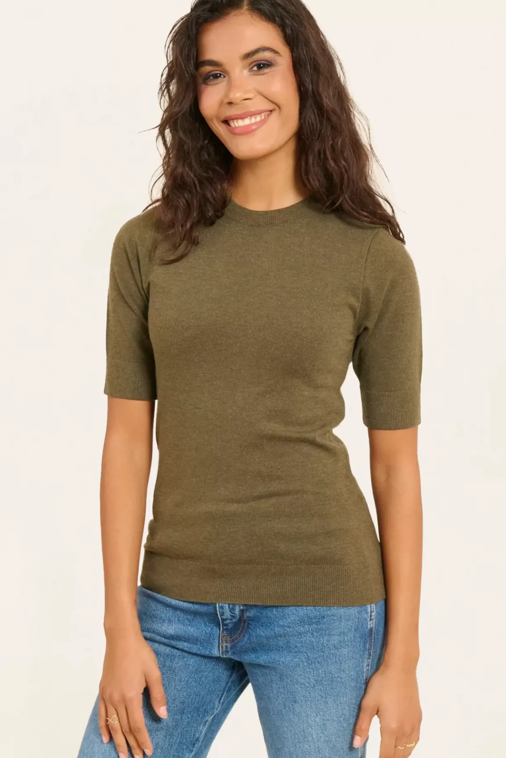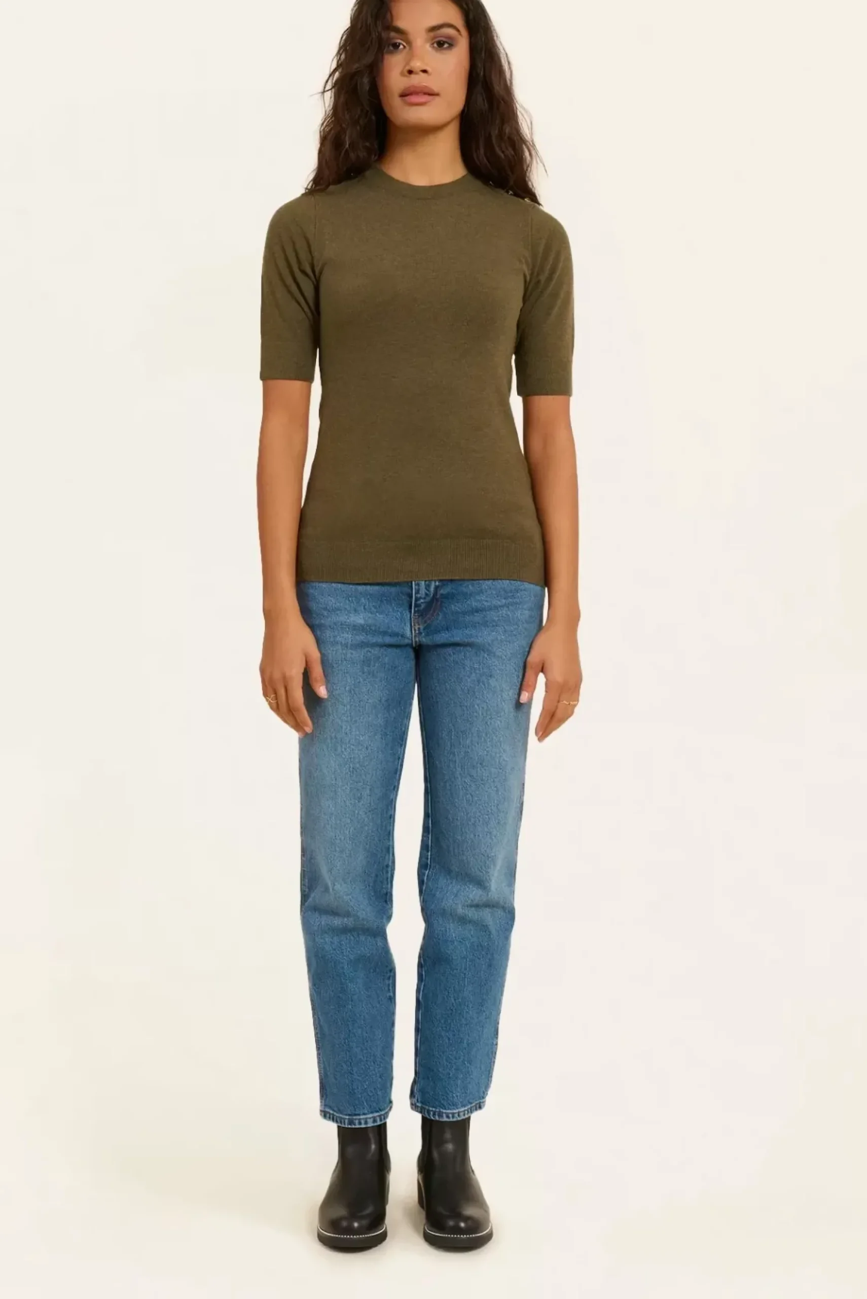 Ce pull à col rond, agrémenté de boutons sur les épaules, offre une allure décontractée avec une touche de sophistication. Ses manches courtes et ses bords-côtes en bas du pull, aux manches et au col garantissent un confort optimal tout au long de la journée.