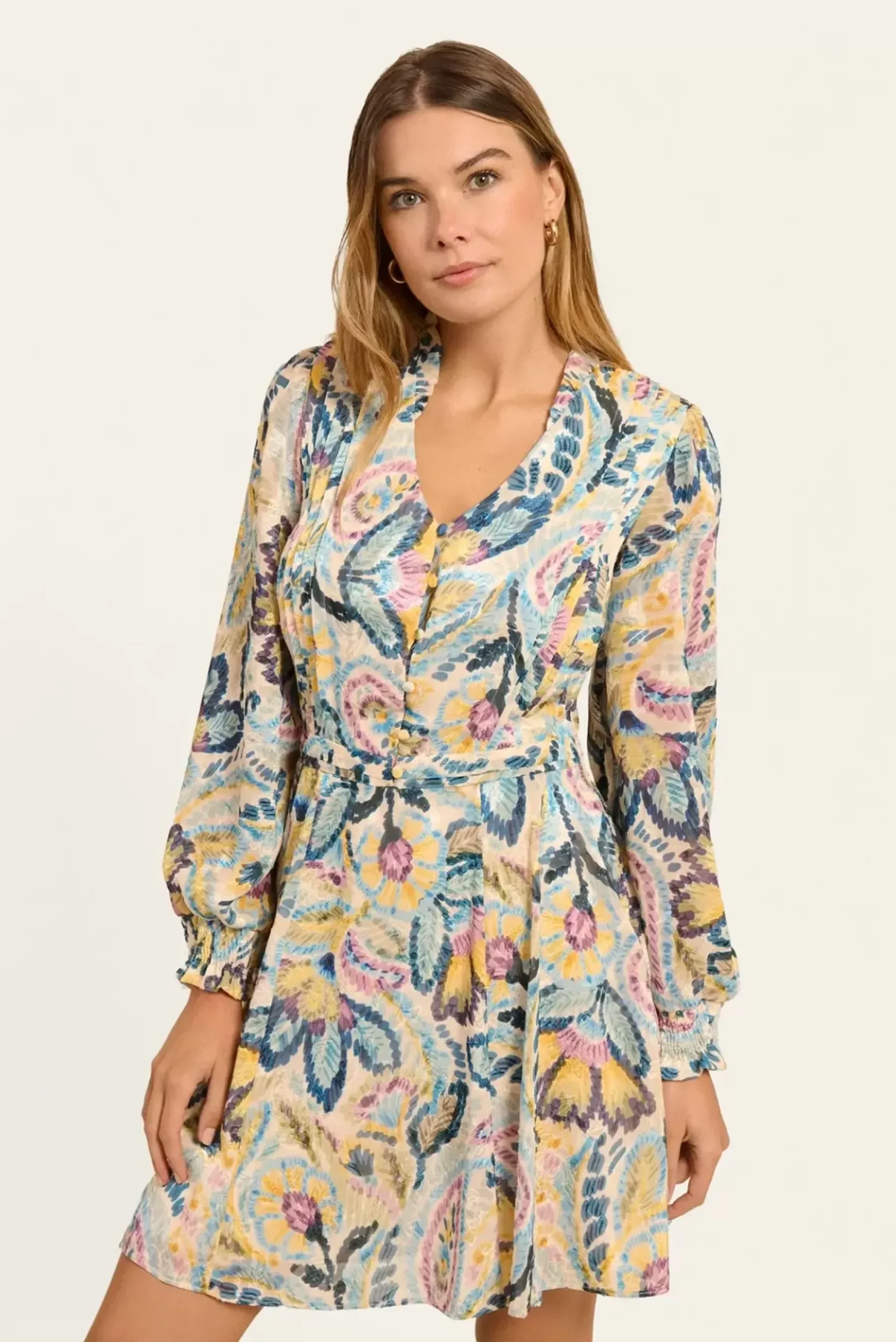 Cette robe cache-cœur imprimée et doublée met en valeur votre silhouette avec son décolleté à volants et ses manches courtes.