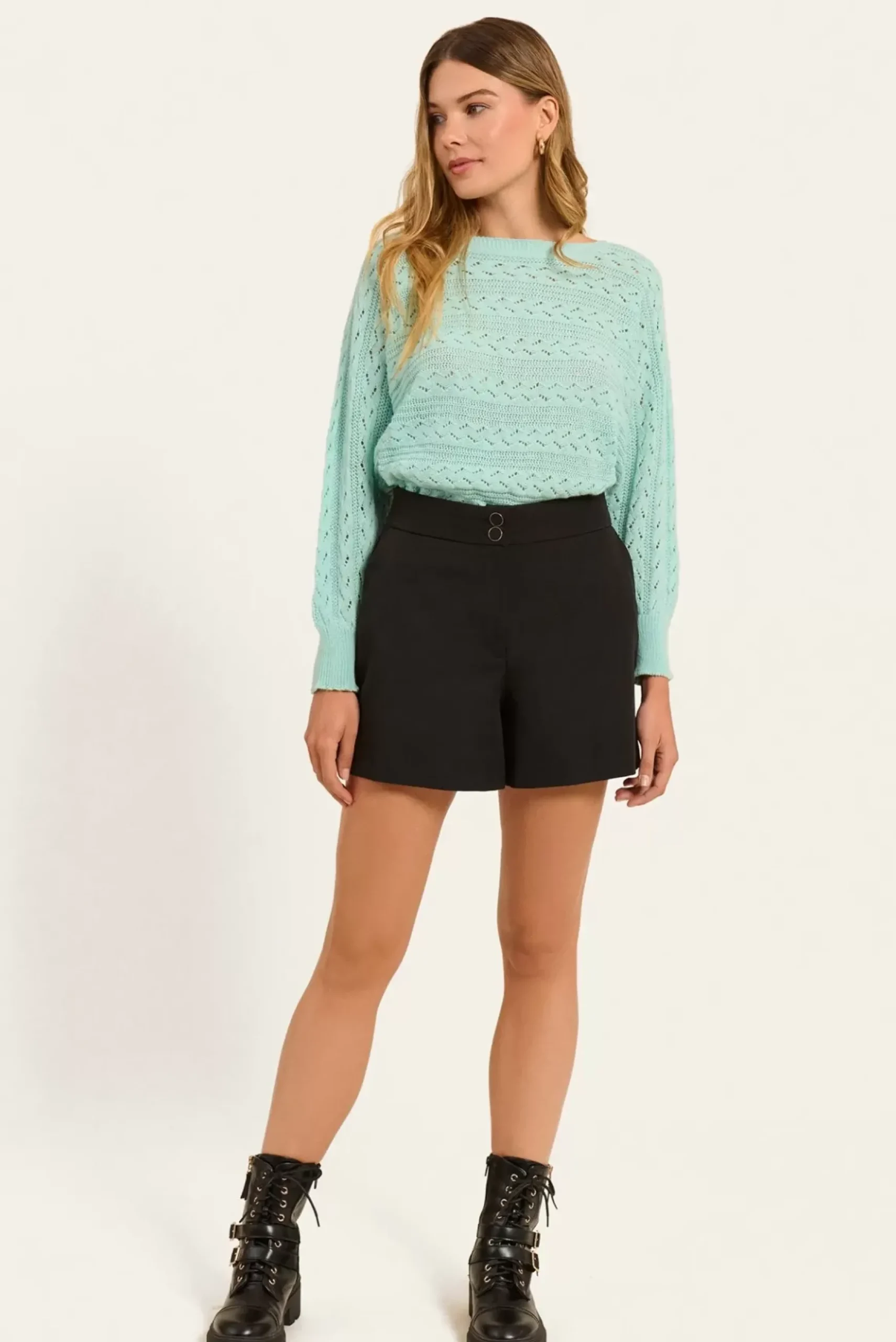 Ce short à plis creux et taille haute offre une silhouette élégante et structurée. Avec ses poches italiennes à l’avant et ses poches passepoilées à l’arrière, il allie style et fonctionnalité, idéal pour un look chic au quotidien.