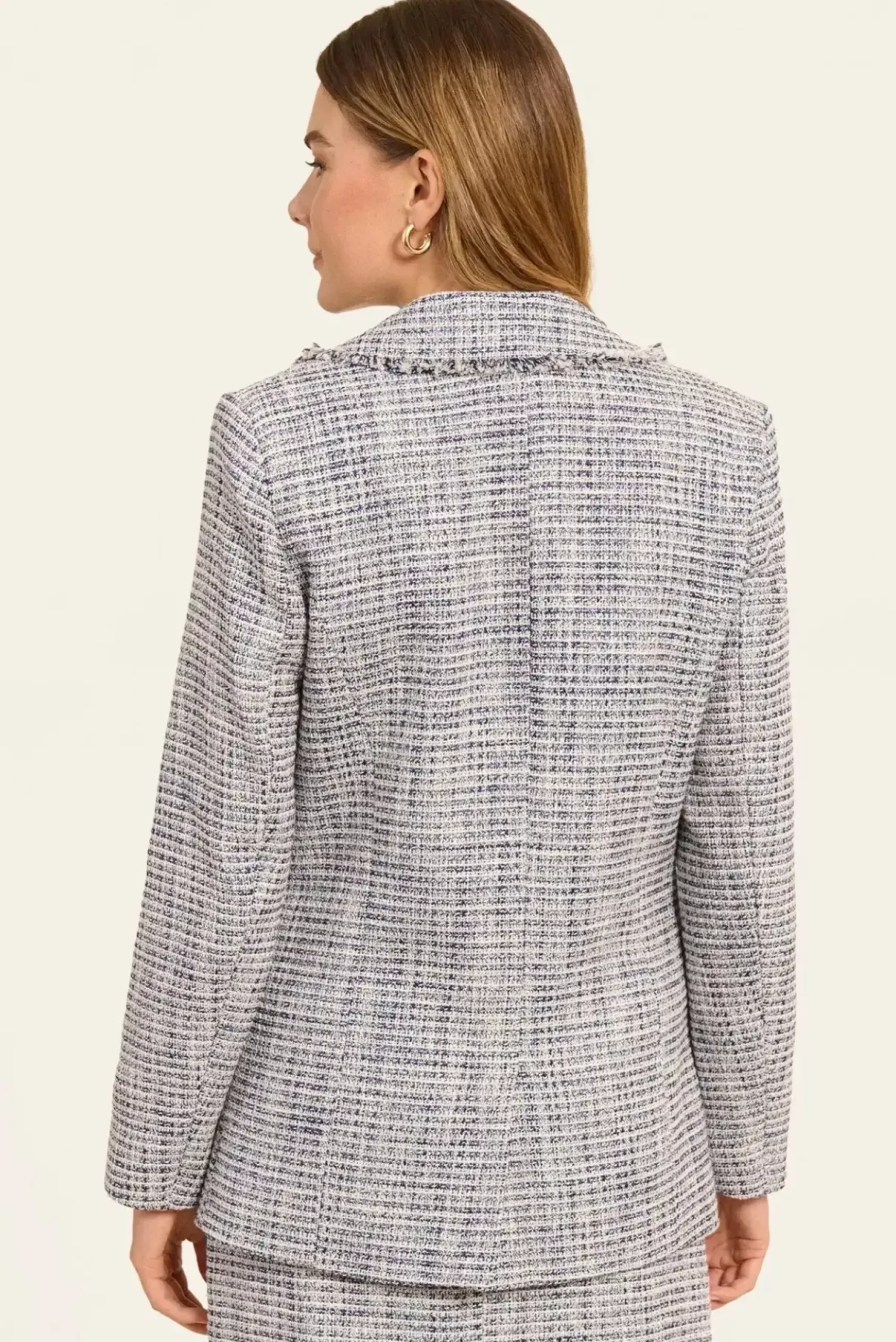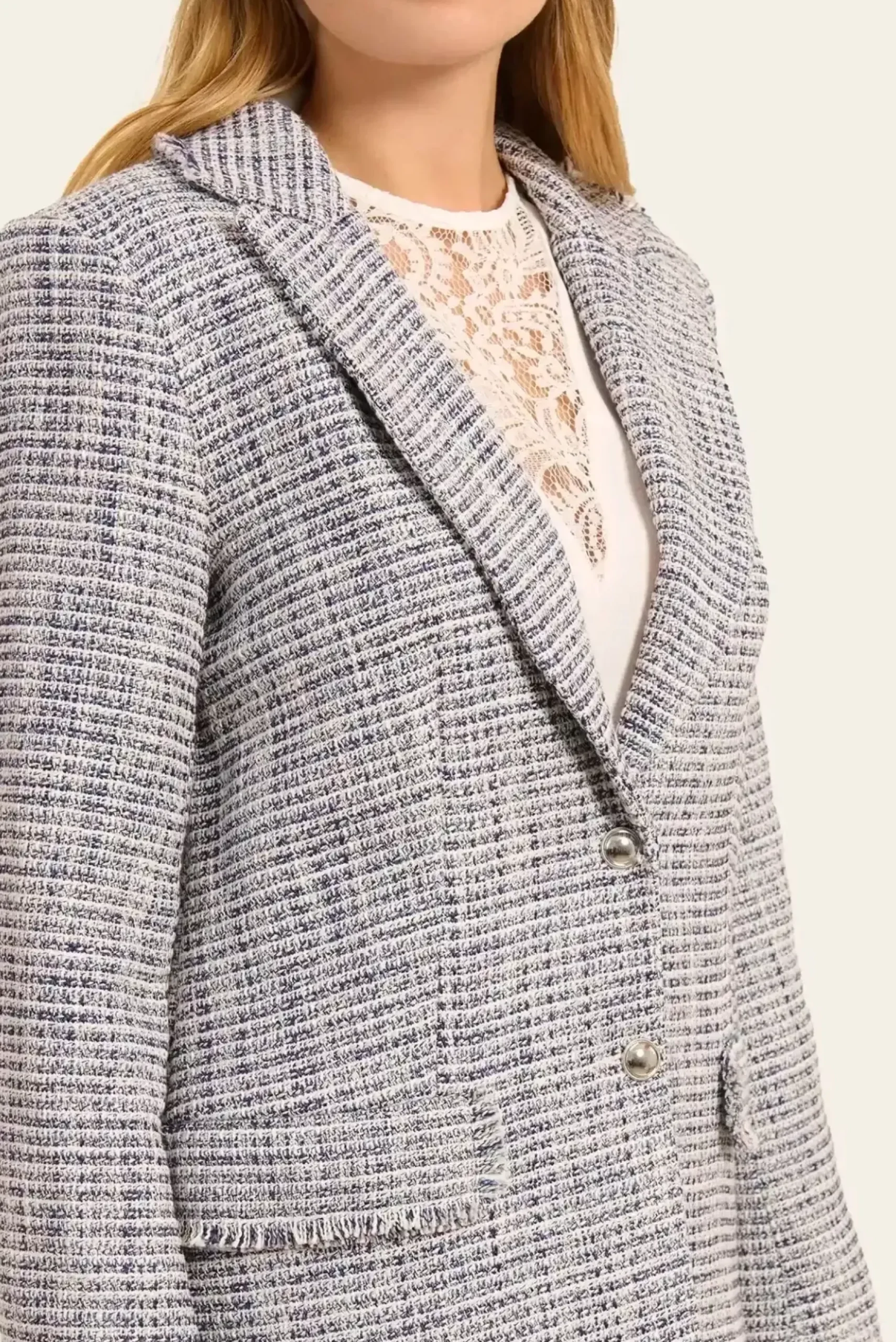 Cette veste blazer simple en tweed, doublée, allie élégance et confort avec ses manches longues, parfaite pour toute occasion.